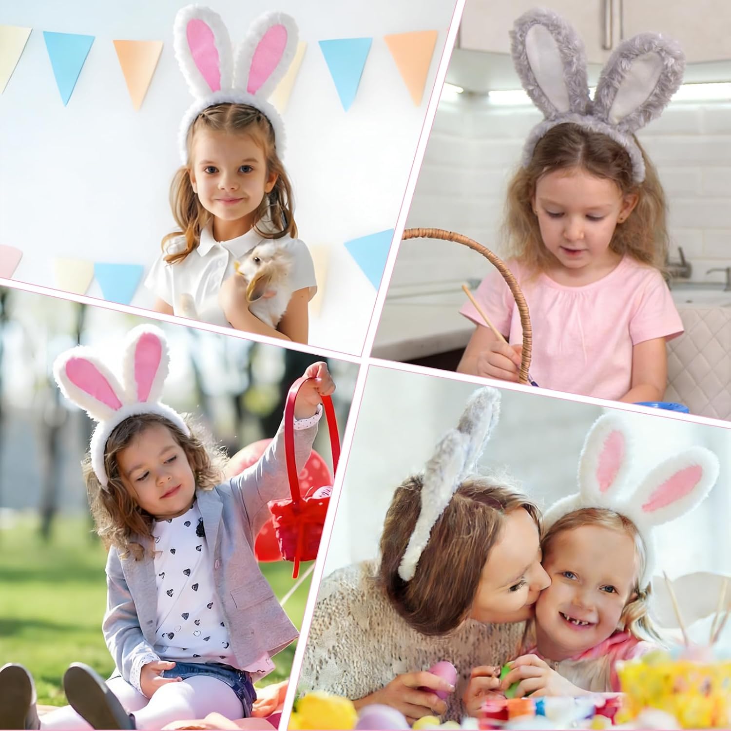 Product Name: Easter Bunny Headband Two-Tone White-Grey Design Set of 2 Plush Hair Accessories Features: 1.Perfect Color Adaptation: This Easter bunny headband adopts a two-tone design in white and grey, which fits perfectly with the festive atmosphere of Easter and can be matched with outfits of different color gamuts. Light shades are ideal for fresh spring and summer looks, their soft hue does not conflict with clothes, but rather enhances the overall energy of the ensemble. Whether for sweet, casual or country styles, there is always a corresponding color option. It is one of the most versatile cerchietti con orecchie di coniglio for the festive season. 2.Safe and Comfortable Details: The bunny ear decorations of the headband are made with sturdy sewing, which is not easy to fall off; The inner edge of the headband has a rounded and encapsulated finish, no sharp edges, so it will not scratch the scalp and hair when wearing, very suitable for children and people with sensitive skin. In addition, the plush fabric has been treated antistatic, it is not easy to absorb dust and hairs in daily use, making maintenance simpler, combining beauty and safety of use. It is a high quality bunny ears headband for daily and festive wear. 3.Widening Usage Scenarios: In addition to daily wear and festive decoration, this headband can also be used as photo props, suitable for Easter themed photo shoots, parent-child photos, photos between friends, easily creating an adorable and funny atmosphere. It can also serve as a costume accessory for store promotions, festive performances in kindergartens, or even as a small gift for family and friends. Its uses far exceed those of ordinary hair accessories, offering better value for money. It is an ideal addition among bunny costume accessories for Easter. PRODUCT SPECIFICATIONS: Material: Plush. Size: as shown in the photo. Colour: grey, white. Package Content: 1 x Headband (White) + 1 x Headband (Grey) (Total 2 pieces)