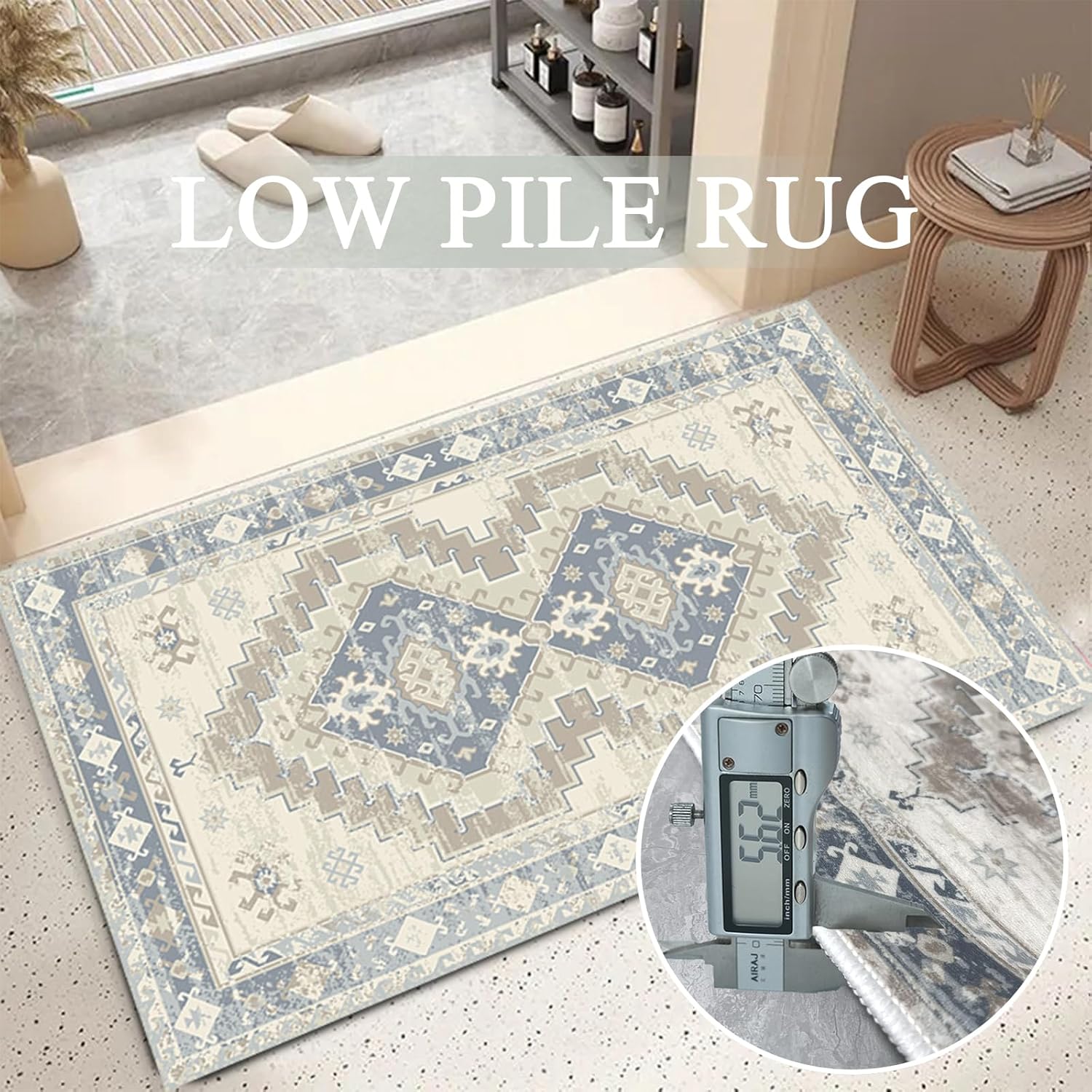 Area Rugs for Living Room, Washable Rugs Moroccan Boho Farmhouse Rug with Non-Slip Backing, Soft Low Pile Indoor Floor Carpet Neutral Rug for Bedroom Dining Room