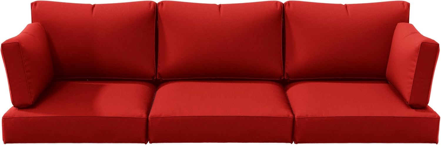 【Size】 Our patio cushion covers come in 8 pieces, including 3 cushion covers (25.6 x 23.6 x 4 inches), 3 backrest covers (23.6 x 13.4 x 7 inches) and 2 side backrest covers (23 x 12 x 7 inches).