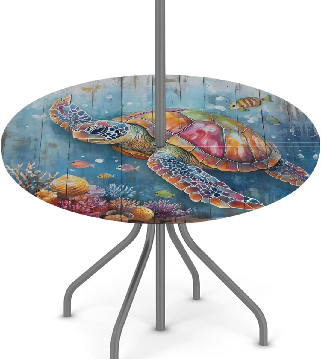 Boho Mandala Pattern Outdoor Round Tablecloth with Umbrella Hole Fitted Circle Table Cloth with Elastic Edge Ootdoor Round Table Cover for Patio Party Picnic Decor fit (36''-44'')(45''-56'')Product Specifications:Size: 36-44''(S Round) fits tables from 40'' to 44'' and45- 50''(M Round) fits tables from 45'' to 56 ''Material: Outdoor Round fitted tablecloth is made of high quality polyester, which is durable, reusable, comfortable and soft. The table cloth is NOT VINYL.Package: 1 Pack Outdoor round fitted solid table coverProduct Features:High Quality:This Outdoor round fitted tablecloth with elastic are made of high-quality waterproof fabric, with elastic Waterproof & Durable which is soft and durable, waterproof and sunscreen, scratch resistant, wrinkle resistant, and immutable.wrinkles.Product Instructions:Due to differences in lighting and shooting angles,the images may differ slightly from the actual product colorPlease allow 1 or 2 inch measurement difference.Your satisfaction is our first pursuit.