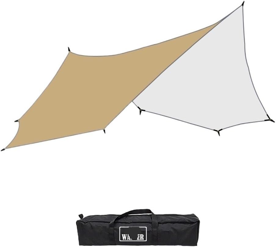 This camping awning with a waterproof canopy tarp provides reliable shade for outdoor adventures. Its lightweight design and quick setup make it ideal for picnics, camping trips, or festivals. Compatible with tents, picnic tables, or open ground, it adapts to various terrains. Durable yet portable, it’s perfect for backyard gatherings, tailgating, or travel use. Whether you need sun protection, light rain coverage, or a stable shelter, this versatile canopy tarp enhances your outdoor experience with practicality and comfort.Size:5.1m x 5.1mMaterial:Polyester waterproof cloth (Light weight and tear resistance balance, suitable for camping and traveling.)