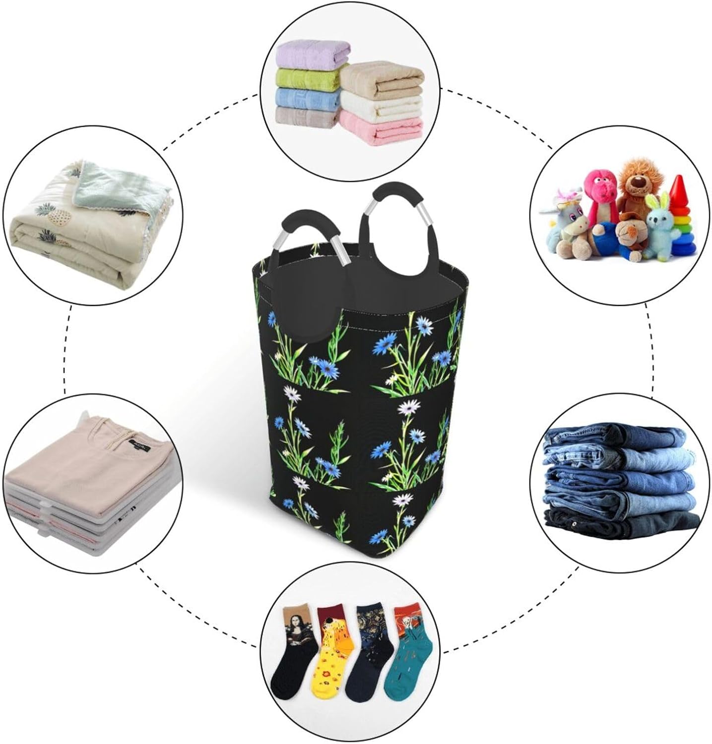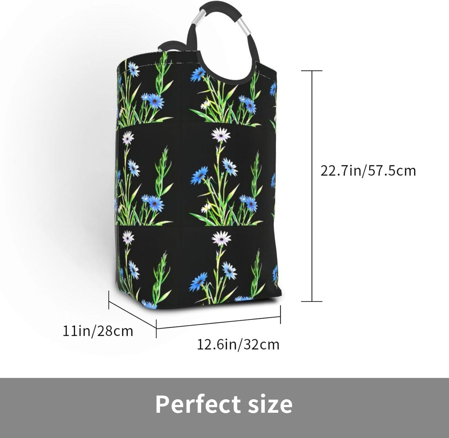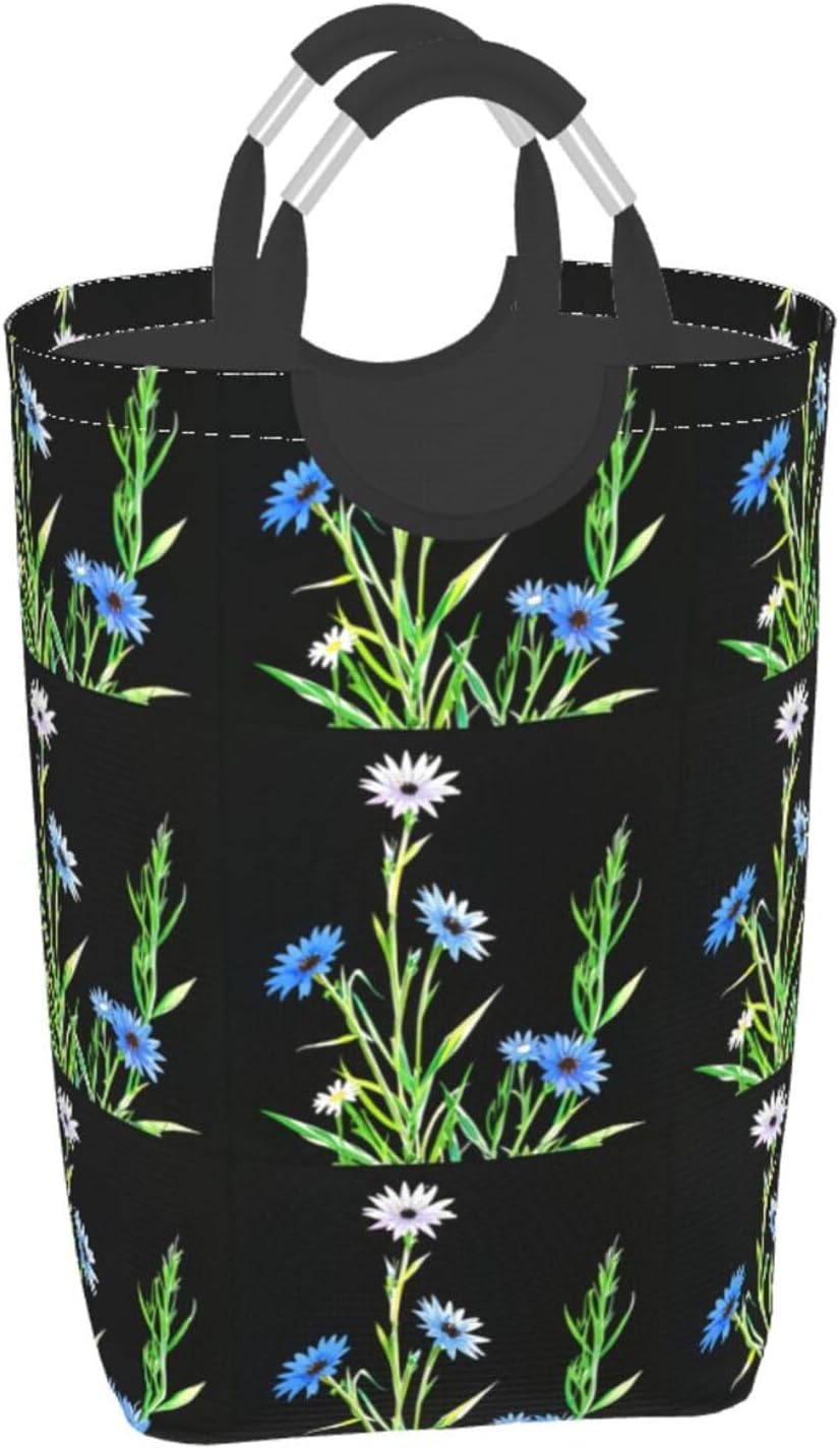 Our Cornflower flowers in the sun dirty clothes storage bag is made of polyester, which is lightweight and flexible. It can maintain a stable shape even under heavy pressure and collision. At the same time, the incorporation of Oxford cloth material significantly improves the durability of the product, and it is resistant to wear, bumps and pulling. The storage bag is designed with a large capacity, which can easily carry winter clothes, daily clothes and a variety of sundries. It is easy to carry and store, and fits tightly into the gap of the suitcase after folding. The aluminum handle is sturdy and reliable, supports hanging, and is suitable for a variety of places. In terms of design, it adopts leak-proof technology, combined with waterproof coating and precision sewing, which is effectively waterproof. The exterior uses cutting-edge transfer technology, and a PE board support is added at the bottom to ensure stable load-bearing and prevent tipping. This storage bag is practical and easy to use, and is an ideal choice for travel and home.