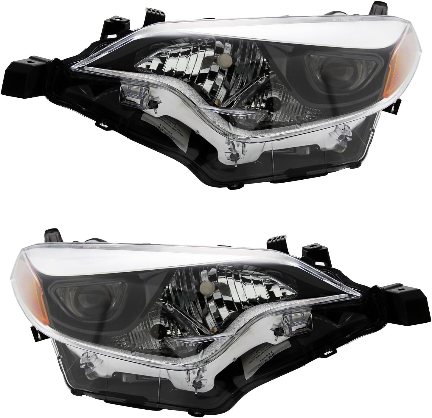 Headlight Assembly Compatible with 2014-2016 Toyota Corolla Sedan 4-Door,Halogen Headlamp Replacement Driver Passenger Side Black Housing Amber Reflector Clear Lens