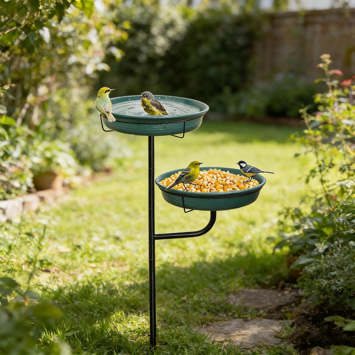 Heavy Duty Metal Bird Feeder And Bathing Bowl For Outdoor Use With Easy Design Features: Versatile Bird Bath and Feeder This vintage metal bird bath serves as both a water station and feeding area for wild birds and hummingbirds Strong Metal Construction Crafted from heavy iron with antique detailing, this outdoor bird bath resists rust and ensures long term Easy Maintenance Design Quickly detach the bowl from its round stand for simple when debris or droppings accumulate Stable Ground Installation Equipped with four thick metal stakes that securely insert into garden soil, maintaining this decorative bird bath firmly in place through weather changes without bending, creating a refuge for visiting birds Attractive Garden Feature lift your outdoor space with this stylish combination bird bath that attracts various bird species while adding rural charm to patios, decks or backyard gardens Enjoy delightful bird songs and engaging wildlife moments Specifications: Substance: Metal, using retro iron craftsmanship, with good durability and anti-rust properties Size: as shown in the picture characteristics: Available in green / black, the face has been specially dealt to increase visual beauty Practicality: Suitable for a variety of birds, can be used for feeding, watering and bathing The design is stable and easy to It is an ideal decoration for the courtyard or balcony Package Includes: Retro iron decorative bird feeding and bathing basin main body × 1 Note: Before using the accessory, please check it is compatible Pay attention to the storage methods