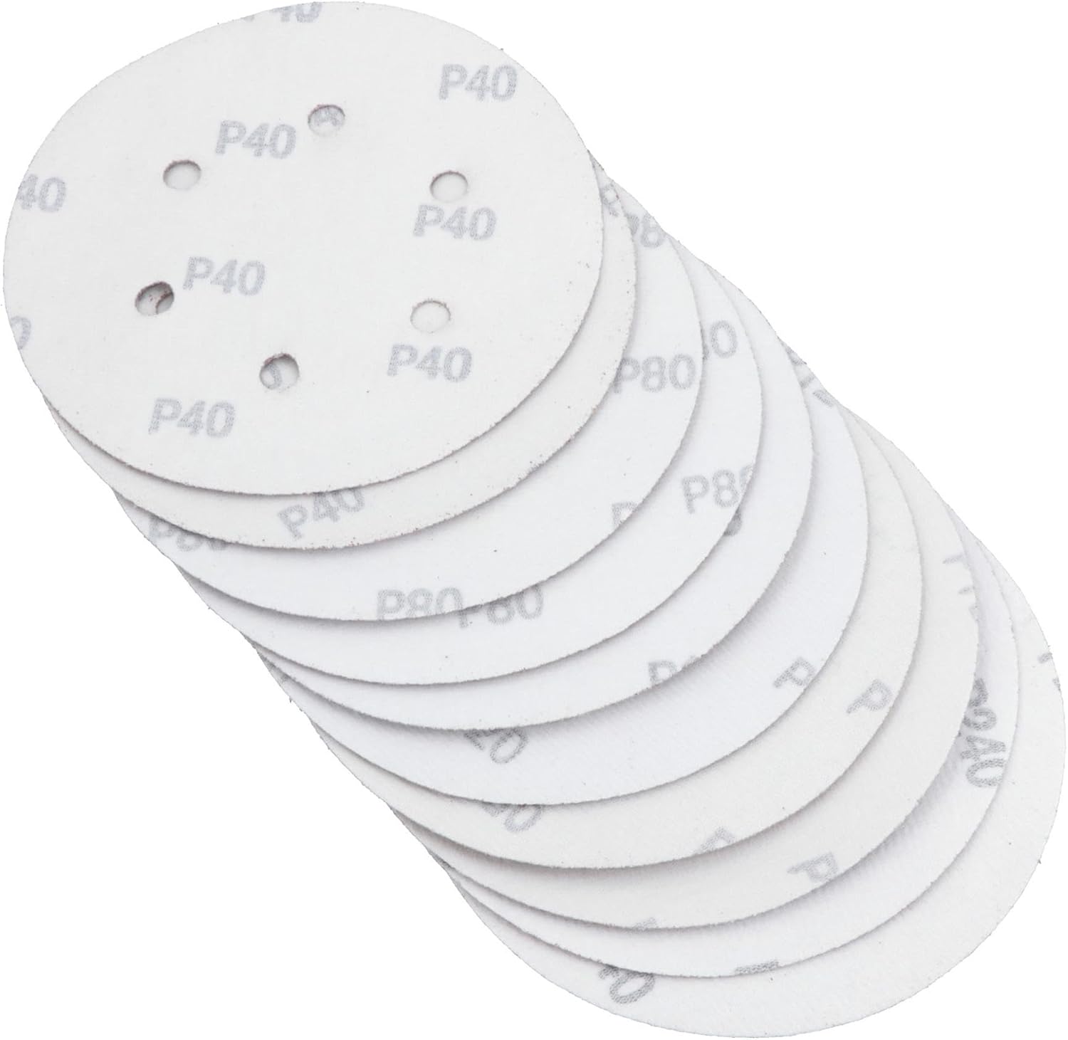 Professional tool for commercial or occasional use Hook/Loop sanding discs suitable for most sanders Designed for the automotive refinishing industry This disc is backed with Hook/Loop cloth for easy installation 6 hole design eliminates clogging and aids dust extraction 6 hole design also reduces the amount of dust which means it can no longer collect in lumps on the abrasive surface Eliminating the problem of dust clogging which causes defects in the sanding surface Disc size 150mm Pack of 100 discs Mixed grit so suitable for all materials including metal / wood etc€š¬Ã‚SET INCLUDES THE FOLLOWING 20 x 150mm discs 40 grit 20 x 150mm discs 80 grit 20 x 150mm discs 120 grit 20 x 150mm discs 180 grit 20 x 150mm discs 240 grit