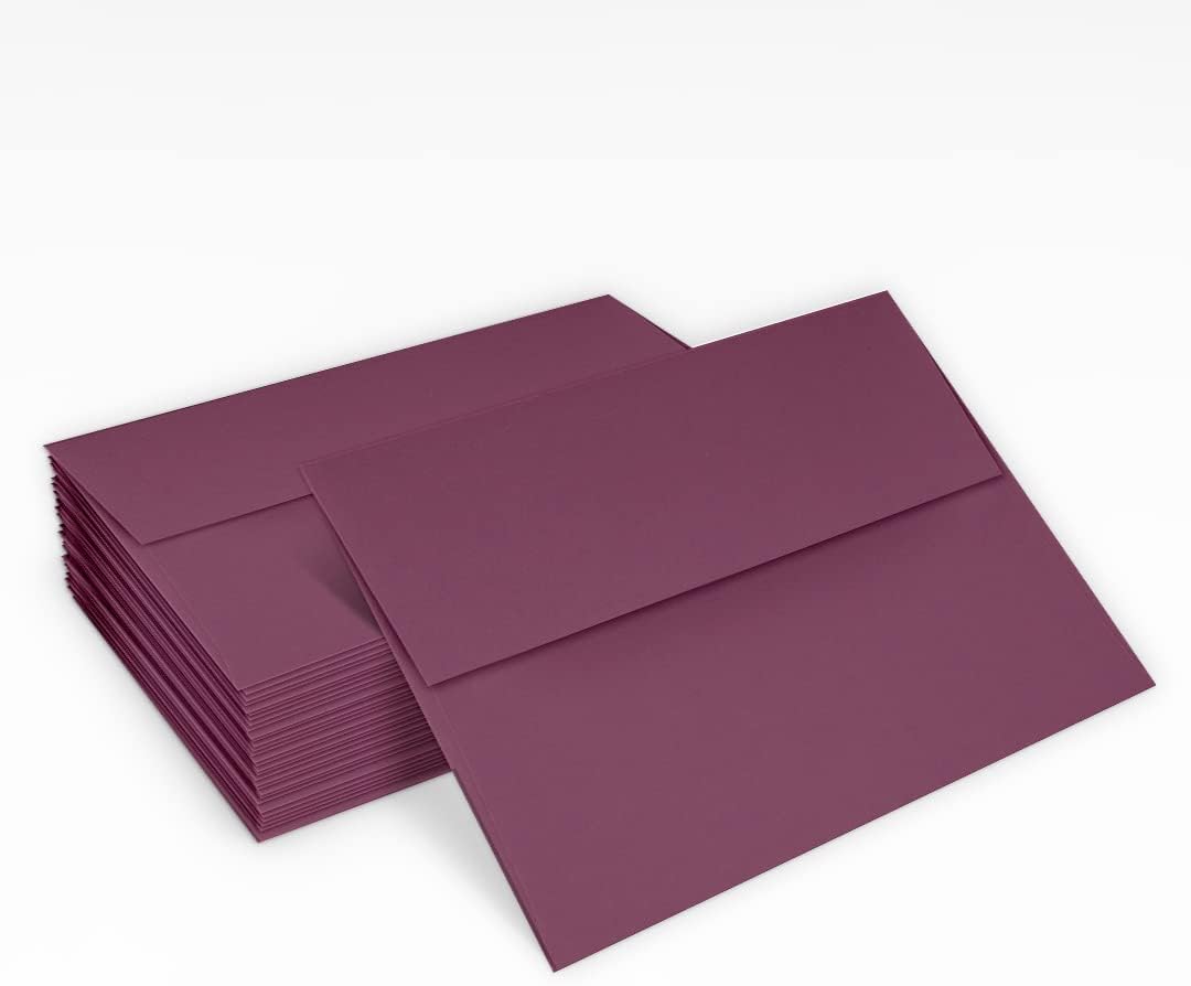 Are you looking for a pack of high-quality envelopes for invitations, announcements, greeting cards, and more? These envelopes are also perfect for any occasion from playful to formal. The modern square back flap adds a sophisticated touch that you won’t find with other sets of similar envelopes. Best of all, these envelopes feature a peel-and-press sealing method! Simply remove the adhesive strip on the inside of the back flap and press down to seal your envelopes. You’ll get a great seal every time, no moistening required. The 80 lb. text-weight envelopes are an excellent choice because they’re about twice as thick as regular printer paper. The sturdy and durable thickness is perfect for shipping long distances so you won’t have to worry about bending or tearing. When printed on, LUX envelopes are complemented with a wide variety of ink colors. You won’t have to worry about paper jams, tears, or ink smears with these envelopes. They’re designed for compatibility with laser and inkjet home printers. These envelopes are also ideal for addressing notes and invitations by hand. Whether you use a gel pen or calligraphy pens, you’ll be impressed with the high-quality, smudge-proof paper. These A2 invitation envelopes measure 4 3/8” x 5 3/4” (111mm x 146mm). If you’re in charge of envelopes for a wedding, party, holiday, corporate gathering, banquet, shower, birthday, or graduation, LUX 80 lb. Vintage Plum envelopes are a durable and high-quality option for all your party-planning needs. Purchase a package of 50, 250, 500, or 1000 today!