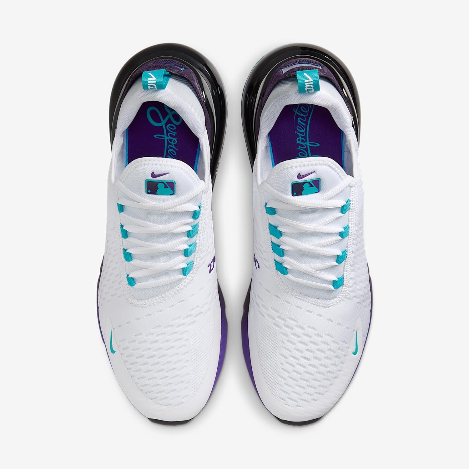 This Nike Air Max 270 offers style, comfort, and a way to show your team spirit. The Arizona Diamondbacks-inspired design takes cues from Air Max classics and your team's colors, resulting in a fan favorite you'll love to wear repeatedly. Shown in White/Black/Court Purple, Style: HQ7993-100.