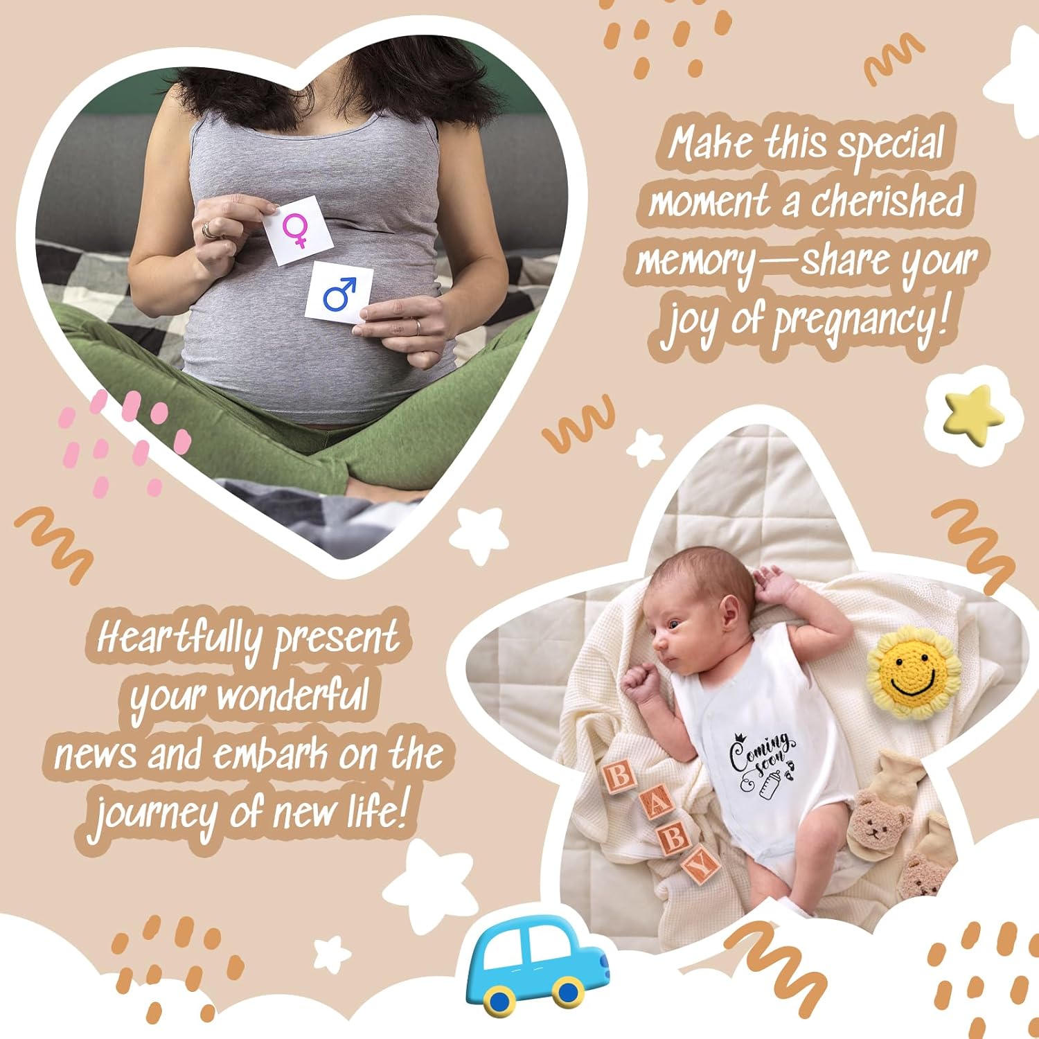 | Recommended Uses For Product | Pregnancy announcement, Gender reveal, Baby shower |