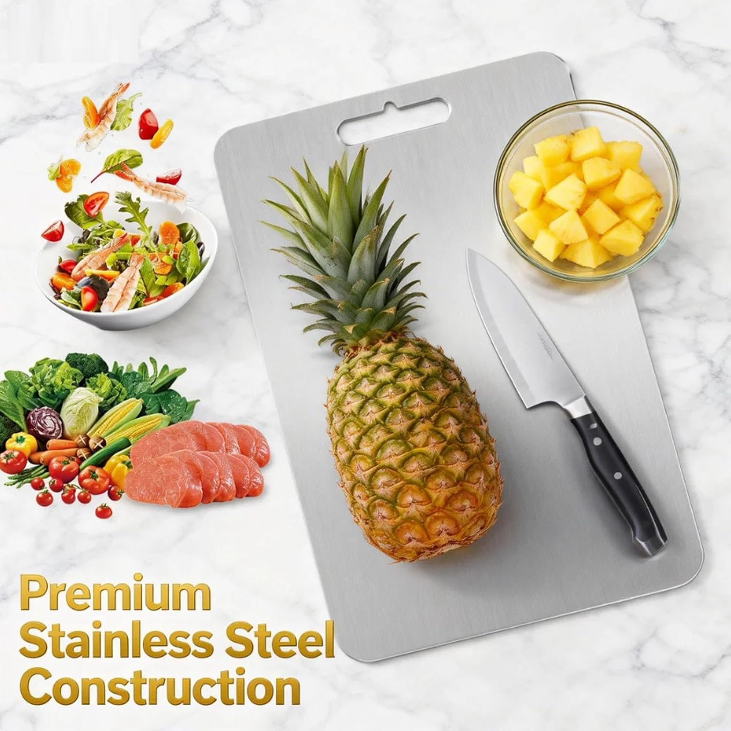 Specifications: Name: Cutting board Material: Stainless Dimensions: S:13.3*9.0in, M: 15.3*11.0in, Package Include: 1/2PCS * Cutting board