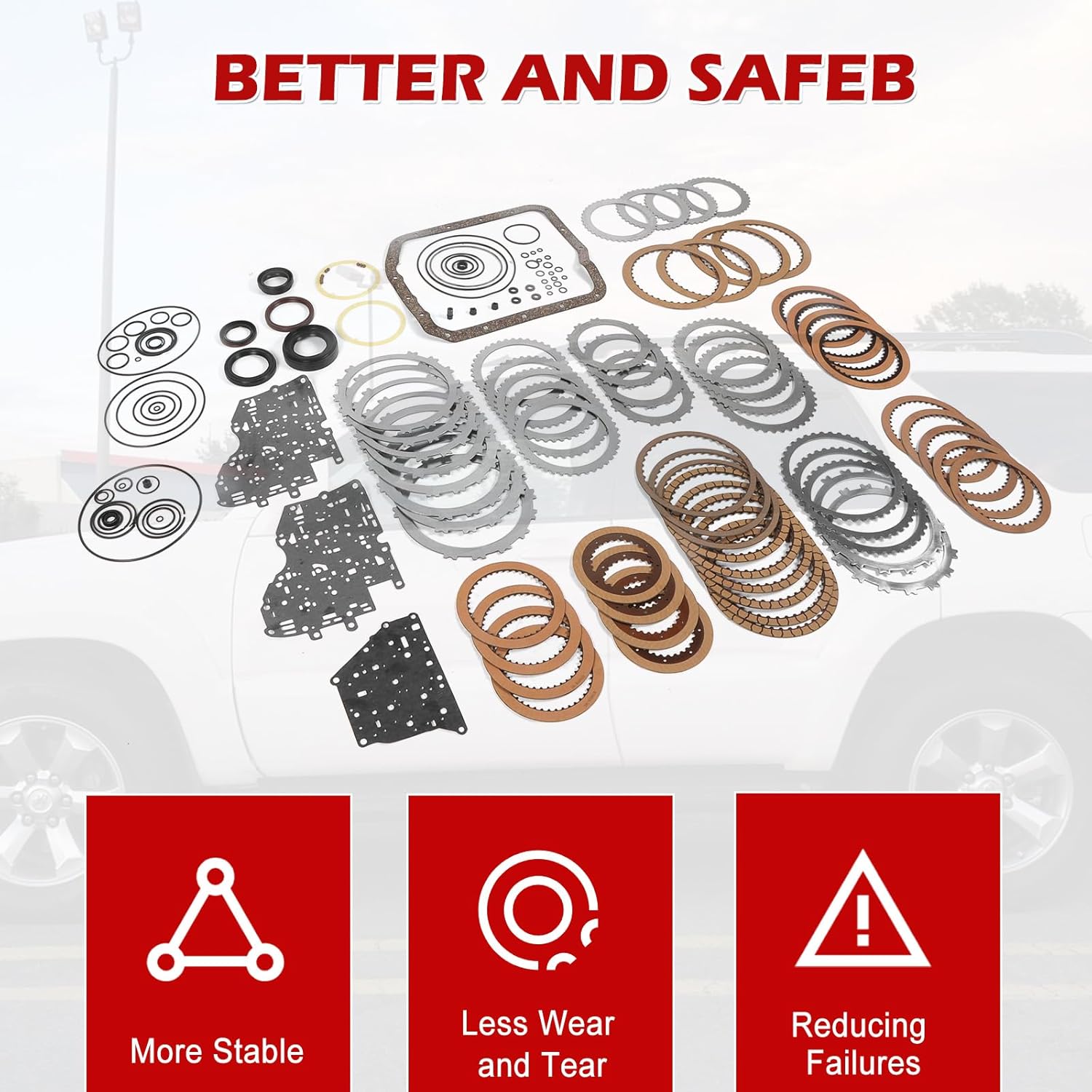 Transmission Rebuild Kit Features:● Made of premium material for maximum durability.● Professional manufacturing, exquisite workmanship, high reliability.● Easy to install, perfect match to the original car.● A good replacement for the old or broken one.Specification:● Type Name: Transmission Master Rebuild Kit● Condition: Brand New and High Quality● Material: Plastic, Rubber, Steel● Fitment Type: Direct ReplacementTransmission Rebuild Kit OE/OEM Part Number:● U150E, U151E, U150F, U151FFits the following Vehicle models:● For 2006-2007 Toyota Avalon 3.5L V6● For 2003-2008 Toyota Avensis 2.4L● For 2004-2006 Toyota Camry 3.0L 3.3L V6● For 2008-2011 Toyota Camry 2.4L● For 2004-2008 Toyota Solara 3.3L V6● For 2007-2008 Toyota RAV4 3.5L V6● For 2004-2009 Toyota Sienna 3.3L 3.5L V6● For 2004-2008 Toyota Highlander 3.3L 3.5L V6● For 2003-2006 RX330 3.0L V6● For 2007-2008 RX350 3.3L V6What are the Benefits of Our Transmission Rebuild Kit?1. Restore your transmission to factory condition.2. Improve the longevity and performance of your transmission.3. Improve shifting performance, fuel efficiency and the likelihood of future problems.4. Ensure a smoother and more reliable driving experience.Package Includes:● 1set Transmission Master Rebuild Kit(As shown in the figure)▶Notice:1. Please use the VIN to obtain the original part (OE) no. Please make sure that the Model Number, Part Number, and Photo are the same as your Vehicle’s before ordering.2. If not sure, please send me some pictures of your original item & VIN number before ordering.3. We recommend professional installation when you are not familiar with it. Be careful when installing and testing, otherwise, it will cause damage to the parts.4. Communication is the best way to solve the problem. If you have any problems after purchasing, please contact us in time, before opening return or case.▶Excellent After-Sales Service:Kessocco has a professional technical team, that not only offer top-notch products but also provide outstanding after-sales service. Customer satisfaction is of utmost importance to us. Our professional team is available to support you after your purchase, assisting with any inquiries and providing technical guidance